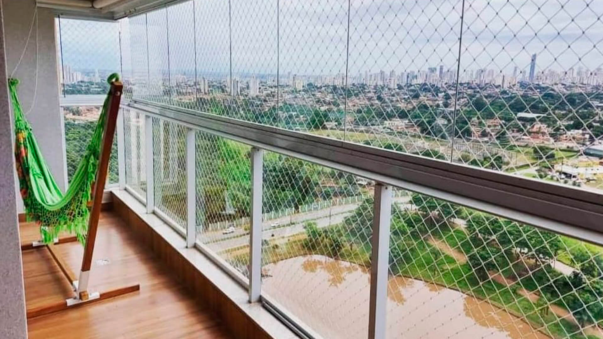 A função da malha é evitar quedas e acidentes, garantindo segurança sem comprometer a estética do ambiente.